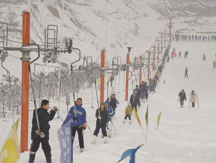 拖牽索道主要用于滑雪場的滑雪道,拖牽索道工作原理:按一定間距將拖牽器通過抱索器聯(lián)于鋼絲繩上,驅動輪帶動鋼絲繩運轉,乘客穿上滑雪板、雪橇或其它冬季運動裝備等,由拖牽器拖拽將乘客運轉至目標位置,實現(xiàn)拖載乘客的目的。